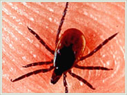 • Carefully remove the tick using blunt tweezers. Grasp the tick close to the skin and pull upward with a steady pressure. Do not "jerk" the tick out. Check to see that the entire tick has been removed.