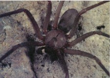 The brown recluse spider, Loxosceles reclusa, is sometimes called a “fiddleback” or violin spider. It has a fiddle or violin shaped marking on its back, and the handle of the instrument points toward the rear of the spider.